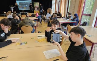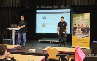 Anschließend haben die Auszubildenden Bennet Moor (Elektroniker für Automatisierungstechnik) und Thorben Spiekermann (Fachinformatiker für Systemintegration) unseren Schüler:innen eindrucksvoll vermittelt, wie ihre Arbeitsalltage aussehen und was für Fähigkeiten und Fertigkeiten in ihren Ausbildungsberufen verlangt werden.